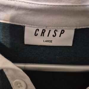 Stylish teal rugby shirt with a white collar. Perfect for casual wear.