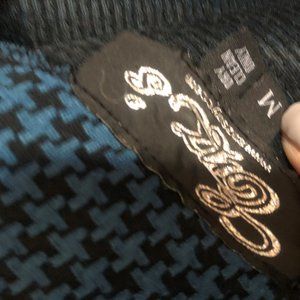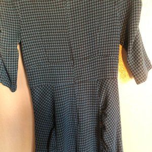 This dress is both body conscious and comfortable! The fabric is stretchy yet soft, doesn't feel constrictive. Ruching at the sides (front and back) and a cute bow one one shoulder. Knee length. Bought from Enz's 76 in NYC.
