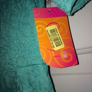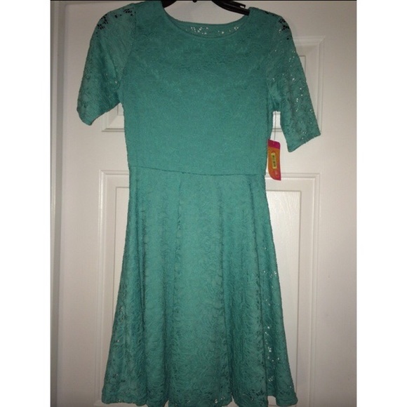 Never worn - Teal lace dress with crossed cut out in the back and quarter length sleeves SIZE: small