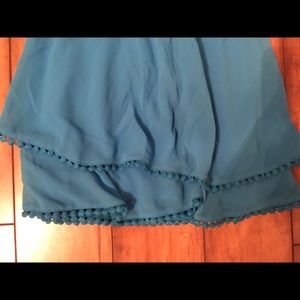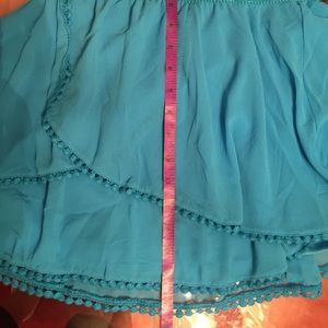 Excellent condition teal mini skirt layered. Thick band, super comfy. Shortest layer from top to bottom 12"& from top to longest layer is 16". Smoke free home. Size large.