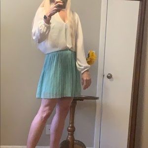 Flattering; has under layer and looks great with shirts tucked in; good length for work; I am 5”11 and hits above my knee; fits somewhat smaller than most large skirts;delicately worn; shirt is also for sale! Check out my page!