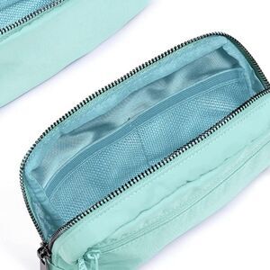 New belt bag with adjustable strap. Bag size is 8x5.5” and straps can go from 22-40” in length.