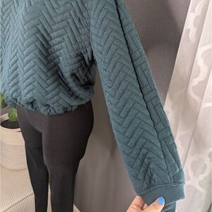A New Day XS Target Teal Quilted Sweatshirt. Elastic at waistband, super comfortable. Does have some minor pilling.