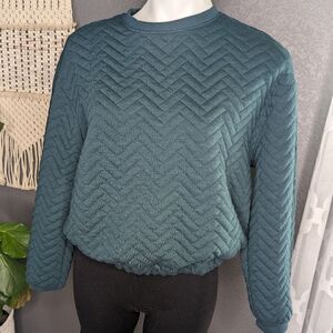 A New Day XS Target Teal Quilted Sweatshirt. Elastic at waistband, super comfortable. Does have some minor pilling.
