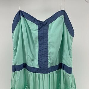 Teal Strapless Sweetheart Neckline Summer Dress Size Small Knee Length Smocked