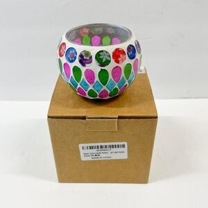 Tealight Candle Holder Exquisite Pattern Vivid Colors Glass Candle Holder Multi