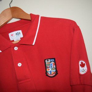 Team Canada Flag Maple Leaf Olympics Polo Shirt Hudson's Bay Co Patches 12 #N18