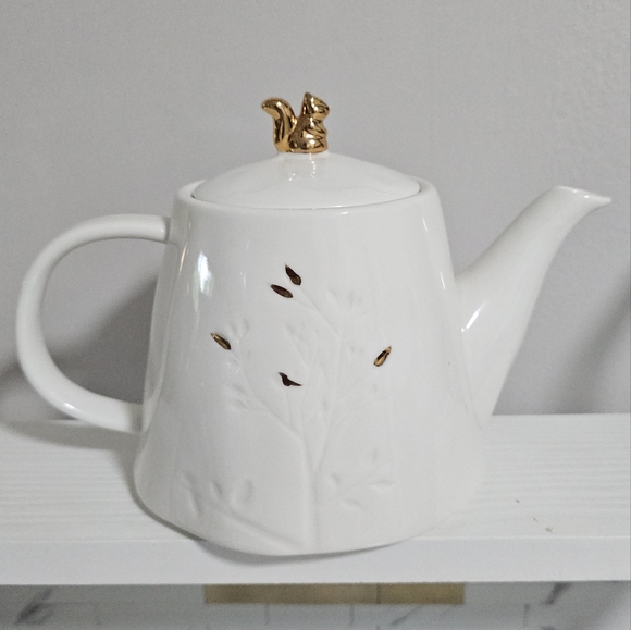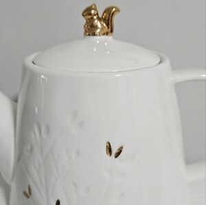 Squirrel teapot white and gold perfect for fall