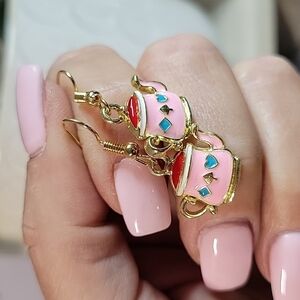 Vintage MCM style pink teapots with hypoallergenic wires.