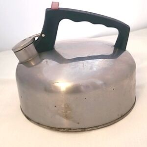 Teapot Whistle Stainless Steel Flip Top Mid Century Modern Retro Red Button