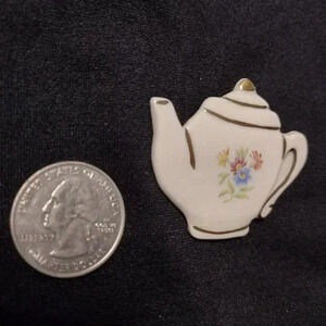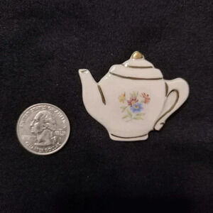 Teapot brooch, withgold tone outline accents, sturdy and very eye catching! questions welcome.