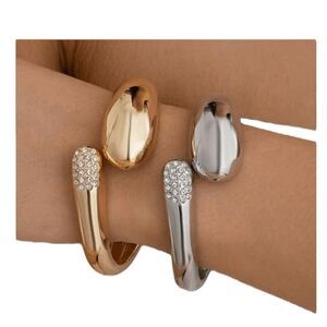 Teardrop Bangle Bracelet Set Gold Silver Rhinestone Chunky Cuff 18K Gold Plated