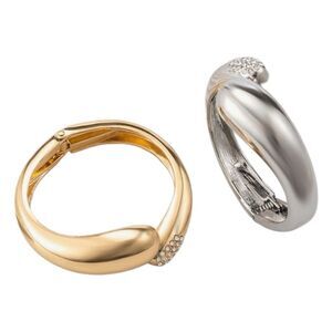 The wide and open bangle design of this cuff bracelet set lays flat on the wrist and can be mixed and matched with other bracelets or stacked for a layered look.