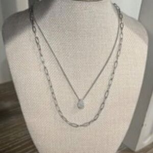 Teardrop Crystal Pendant 2Layered Silver Necklace Nwot