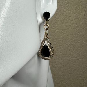 Teardrop Drop Earrings clutch back Earrings Cubic Zirconia Golden Tone Romantic