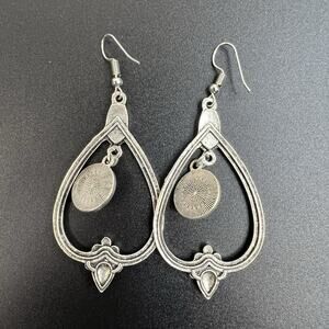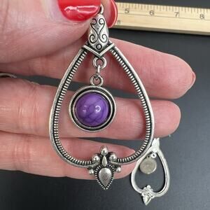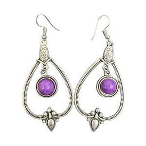 Teardrop Earrings Boho Silver Tone Ethnic Purple Stone Ethereal Emblem Purple