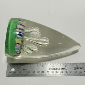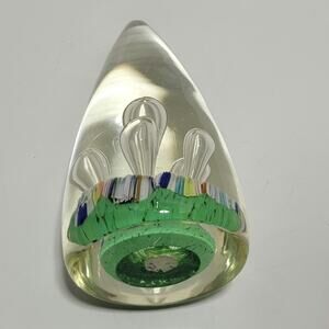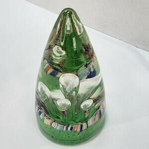 Teardrop Egg Shaped Bubbles Green Multicolor Art Glass Paperweight Stalagmites