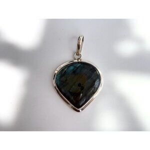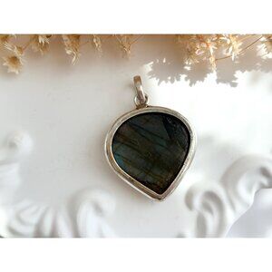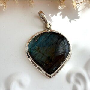 Teardrop Labradorite XL Gemstone Minimalist Sterling Silver 925 Vintage Pendant
