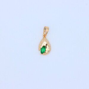 "Teardrop Leaf Pendant with Marquise Green Stone in Gold Finish, XPPT1726