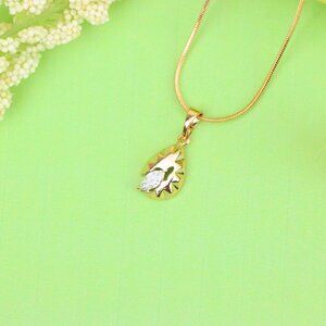 "Teardrop Leaf Pendant with Marquise White Stone in Gold Finish, XPPT1727