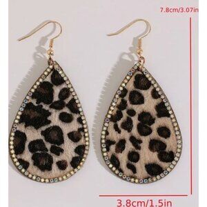 Teardrop Leopard and Rhinestone Earings New
