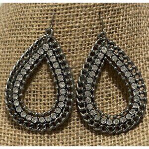 Teardrop Metal Rhinestone Hook Pierced Earrings Statement Brutalist Chain