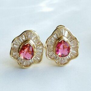 Teardrop Pink Topaz CZ Omega Lever Back Earrings 🆕