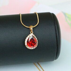 ✔️ Features a teardrop-shaped deep red gemstone