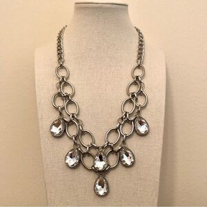 Teardrop Rhinestones Dangle From Layered Silver Tone Links. Sparkling Statement Set!