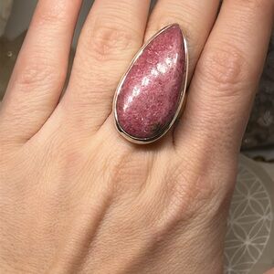 New ring with tag. Huge Teardrop Rhodonite size 7 1/4 stamped 925