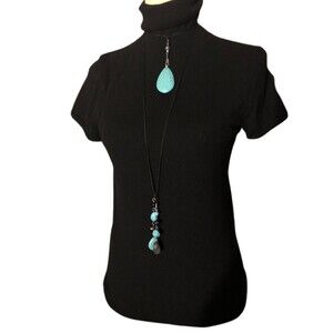 Teardrop Turquoise Lariat necklace with glass and stone beads Silk & Silver Tone.