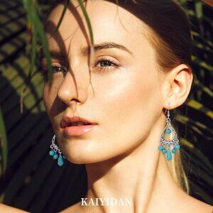 Teardrop Turquoise Tassels Vintage Long Summer Earring for Women Jewelry