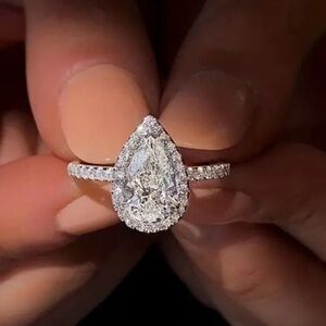 Teardrop Zirconia Sophisticated 3-Prong Setting Sparkling Cubic Zirconia Size 8