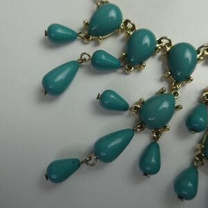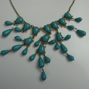 Teardrop Faux Turquoise Beaded Bib Statement Necklace Gold Tone Boho Festival