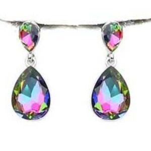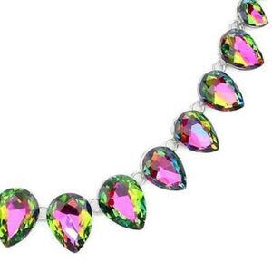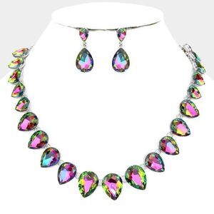 Teardrop Oil Spill Crystal Silver Evening Necklace Set