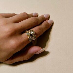 Teardrop Diamond decor ring in gold tone hardware
