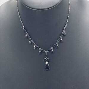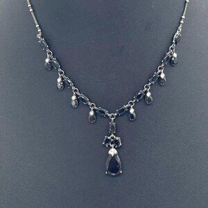 Teardrops Black and Clear Rhinestones Y Drop Necklace 16 to 18 Inches