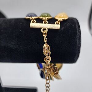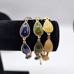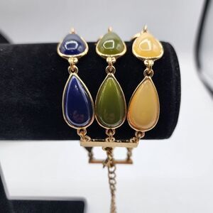 Teardrop triple strand green blue & yellow 2.5"x10" adjustable bracelet