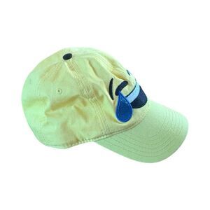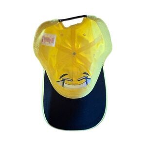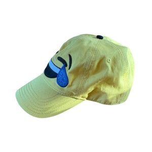 Bright yellow baseball cap featuring the tears of joy emoji face on the front of the cap. Cap is adjustable. 100% cotton. Size: One Size. Cap is in excellent condition; looks like new. No stains or damaged fabric.