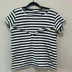 Teat and Cosset cotton navy and white stripped nursing top with zipper large