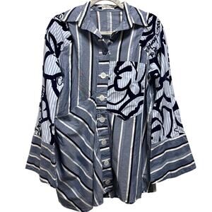 Teatum Jones Rare Patchwork Lagenlook Split Hem Flare Sleeves Button Down Size 8