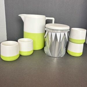 Teavana™ 32oz white & Green Teapot 5 piece set pot and tea Cups RARE Starbucks