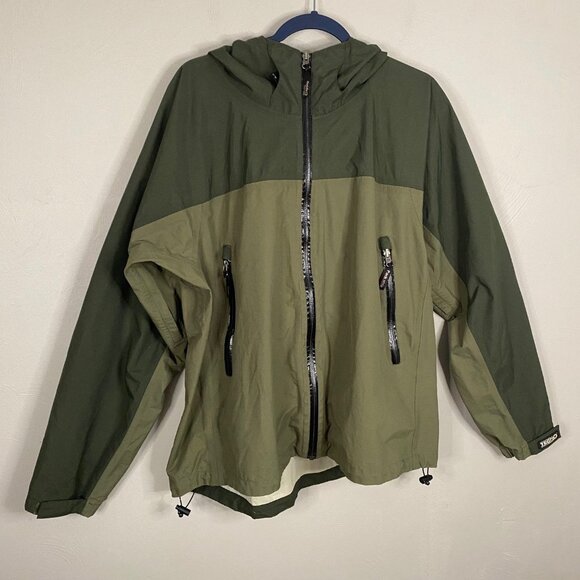 TecH20 Guide Series Hooded Waterproof Breathable Green Nylon Full Zip Raincoat L