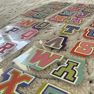 A complete set of vibrant alphabet stickers. They are flat and perfect for smooth and flat surfaces, folders, decorative ideas.