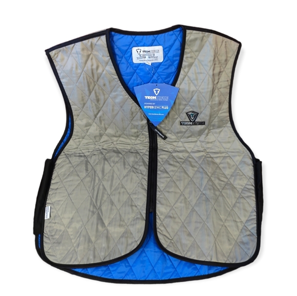 hyperkewl Plus evaporative cooling materia is a unique fabric that absorbs and slowly releases water through evaporation . When the water evaporates a cooling effect occurs. process as super - charging the body's natural cooling process.