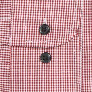 - Long sleeves with rounded, adjustable button cuffs