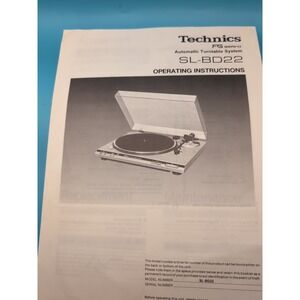 The Technics SL-BD22 Record Player / Turntable Owner / User Manual is an original vintage manual designed for users of this particular Technics brand product. It provides detailed instructions and specifications for operating and maintaining the Technics SL-BD22 Record Player / Turntable, ensuring optimal performance and longevity. This manual serves as a valuable resource for enthusiasts of vintage audio equipment, offering insight into the functionality and care of this specific model from the renowned Technics brand.