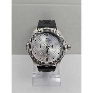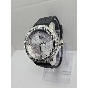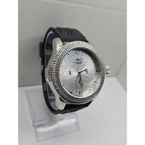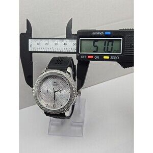 Techno King 51mm Iced Out Crystal Bezel Dial Black Strap Quartz Mens New Battery