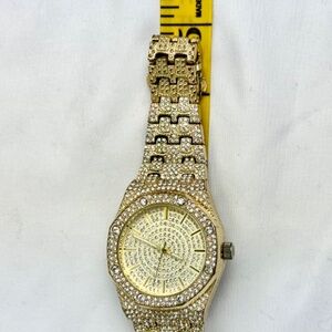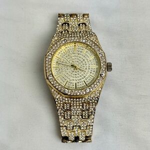Techno Pave Quartz Watch Men Hip Hop Iced Gold Metal Bracelet Band 8651NS