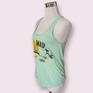 Techstyles Sportswear Green “Maui Hawaii” Racerback Tank / 65% Polyester 35% Cotton / Rounded Hem